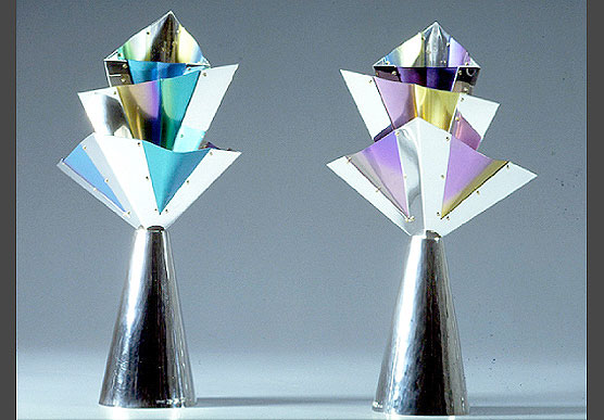 Candlesticks #76 - Sterling silver & anodized Titanium. Hand hammered & fabricated